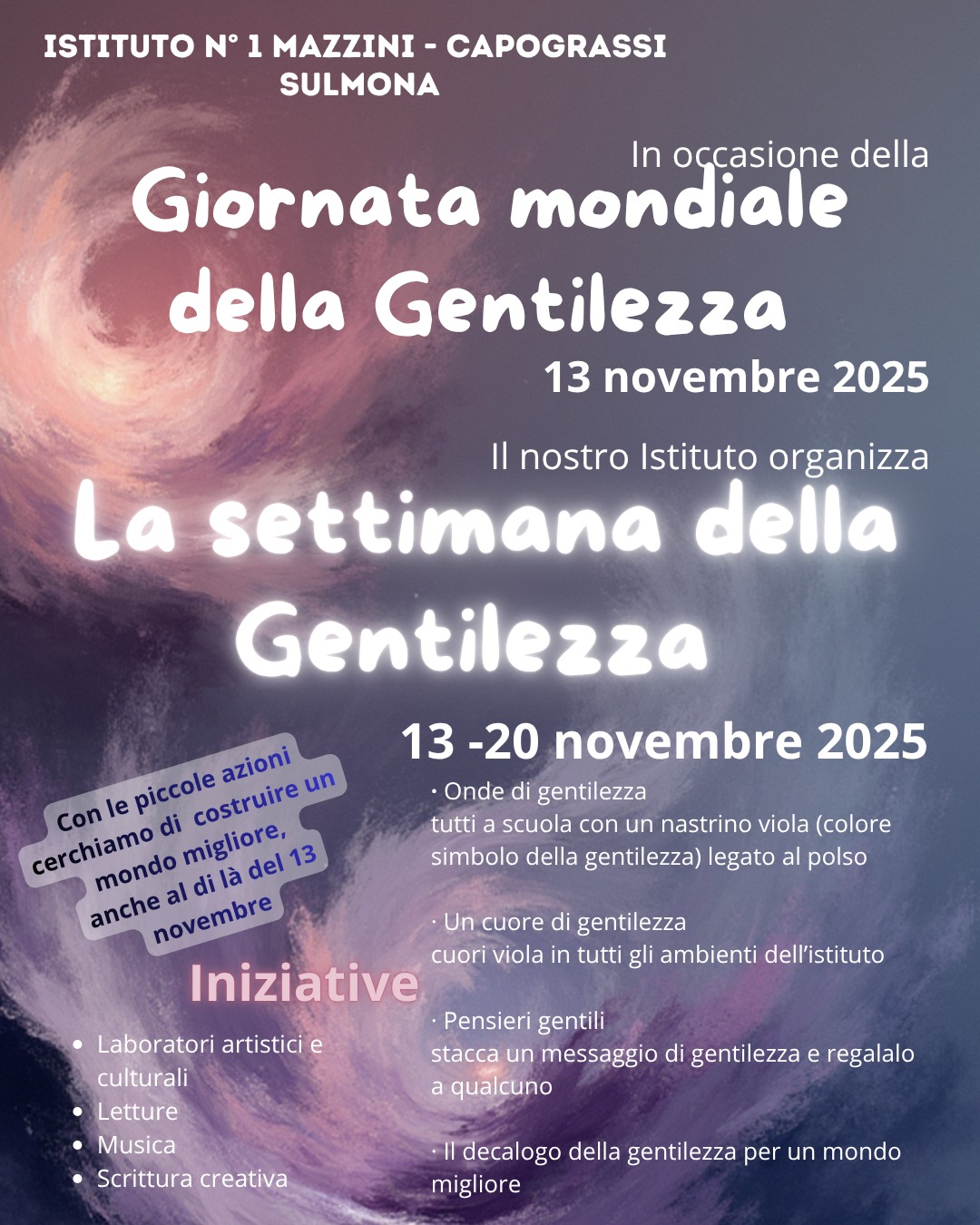 Leggi tutto...💜🌷Nei nostri plessi della scuola dell’infanzia la Settimana della Gentilezza è stata un piccolo viaggio fatto di gesti dolci, parole che fanno bene e attività che hanno aiutato i più piccoli a scoprire il valore del rispetto e dell’attenzione verso gli altri. Tra racconti, giochi collaborativi e momenti di condivisione, i bambini hanno colorato le…