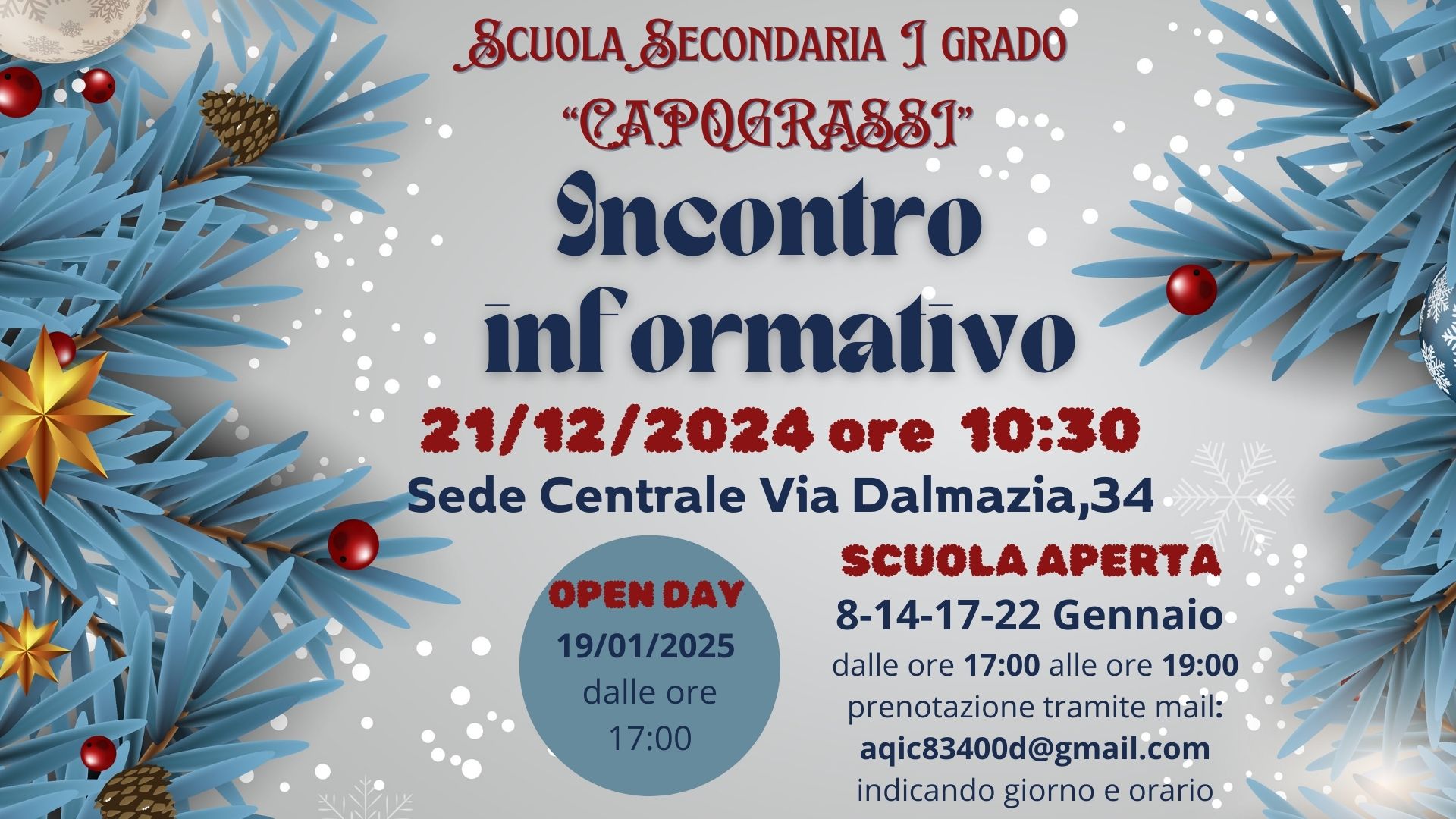 Leggi tutto...Per la Scuola aperta prenotare all’indirizzo email: aqic83400d@gmail.com specificando la data e l’orario in cui si intende effettuare la visita