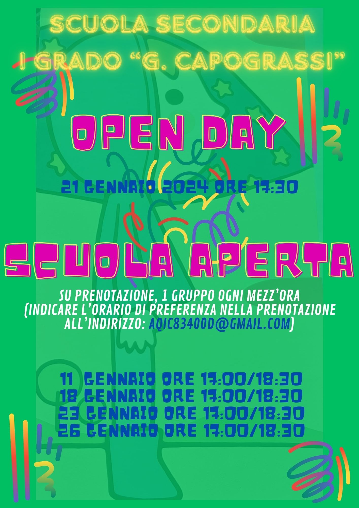 La prenotazione per la SCUOLA APERTA va effettuata all’indirizzo AQIC83400D@GMAIL.COM